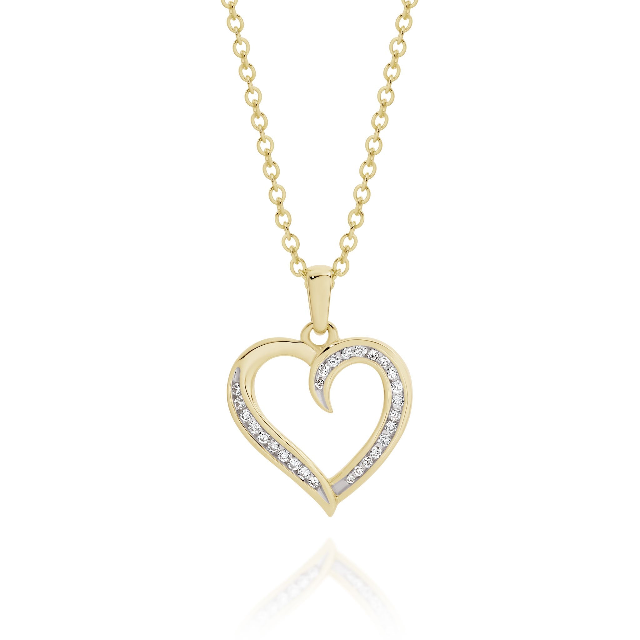 9ct yellow gold 0.12ct channel set diamond heart pendant