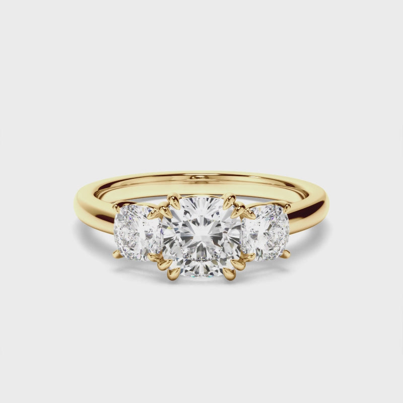 Cushion Cut Diamond Trilogy Engagement Ring with Round Brilliant Sides