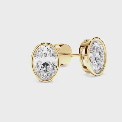 These stunning oval cut diamond stud earrings, made with your choice of diamond centre stone, feature a bezel setting and butterfly post. Exuding fluidity in its line work, and boasting an elegant silhouette, as with all the pieces in our Bespoke Collection, this piece is made especially for you. Pictured here with a 1.00ct Oval Cut Diamond for each ear, the final price is determined following your centre stone selection.