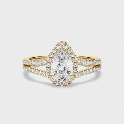 Pear Cut Diamond Halo Engagement Ring with Pave Sides