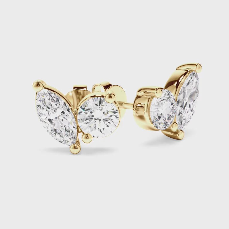 Pear & Round Brilliant Cut Diamond Toi et Moi Stud Earrings