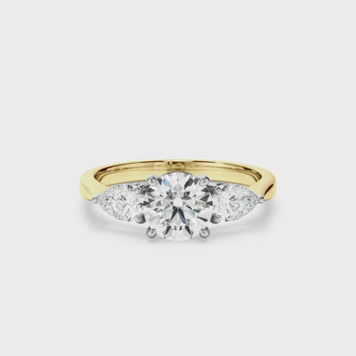 Round Brilliant Cut Diamond Engagement Ring With Pear Cut Diamond Sides