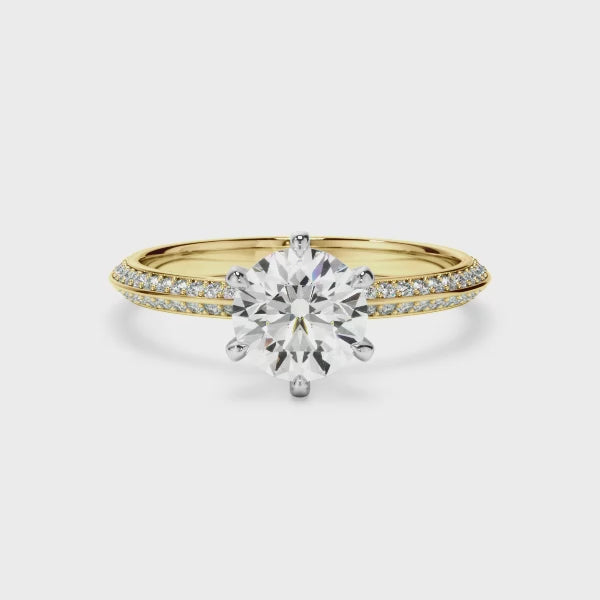 Round Brilliant Cut Diamond Knife Edge Engagement Ring With Diamond Pave Sides
